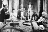 Ein armer Schneider erlegt mit seiner Klatsche gleich einen ganzen Fliegenschwarm auf seiner Marmeladenschnitte.
